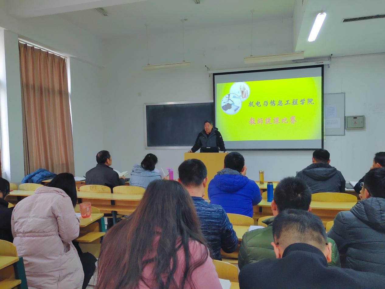 11月28日下午,学院机电与信息工程学院在1215教室举行了教师说课比赛,旨在加强教师教学基本功,提高教师综合教学能力。机电与信息工程学院各教研组、全体教师参加说课比赛,髙鹏燕老师荣获得第一名,吴勇老师、张晓建老师分获得第二、第三名。