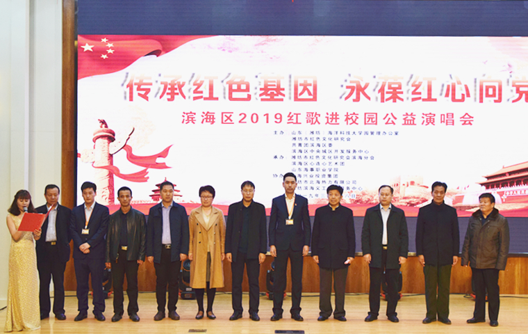 3月28日晚,以“传承红色基因,永葆红心向党”为主题的滨海区2019红歌进校园公益演唱会在学院图书馆报告厅举行。山东(潍坊)海洋科技大学园、潍坊市红色文化研究会、滨海区宣传统战群团部、中央城区开发服务中心相关领导、学院副院长仉继航以及学院部分师生代表共同欣赏节目。