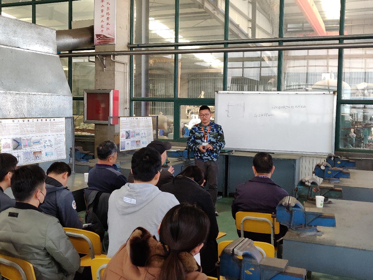 近日,学院机电与信息工程学院在金工工艺实训室举办“金工技能公开课”。旨在充分发挥优秀教师的引领作用,提升学院教师的课堂专业素养,提高教师教育教学水平,为学院专业教师搭建一个互相交流、探讨、展示、学习的专业技能提升平台。本次活动由机电与信息工程学院张晓建、于同福两位老师主讲,学院副院长李振鹏、机电与信息工程学院院长孙旭清、教务处处长张庆会、副处长韩娜、处长助理刘学义、李朋熙教授、以及机电学院全体金工技能教师参加此次听课活动。