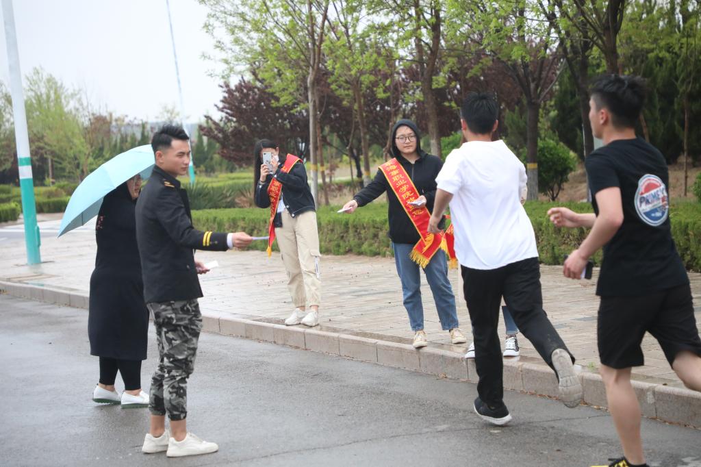 中午13点30分,远足行活动正式开始,3200名师生组成的庞大队伍,浩浩荡荡的从学院南大门出发。远足途中,天空阴雨连绵,狂风不断,在这种恶劣的环境下同学们依然精神抖擞,彰显青春的蓬勃与朝气。展现出学院学生坚韧不拔的毅力和咬定青山不放松的决心!返程途中,很多同学体力不支,双脚磨出了水泡却依然在同伴的搀扶下执着坚持到最后一刻。下午15点30分,全体师生安全返回了校园,远足活动圆满结束。虽然每一位学生红扑扑的脸蛋上都写满了倦意,但眼睛里却闪烁着青春的光芒。