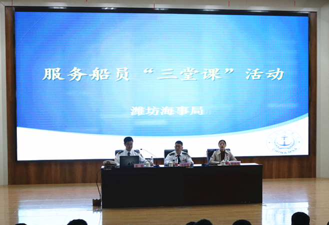 5月9日上午,潍坊海事局走进学院航海学院,在图书馆报告厅开展了船员服务“三堂课”宣讲活动。本次活动由潍坊海事局政务科主任张德强、副主任赵超主讲,航海学院全体师生共同参加。