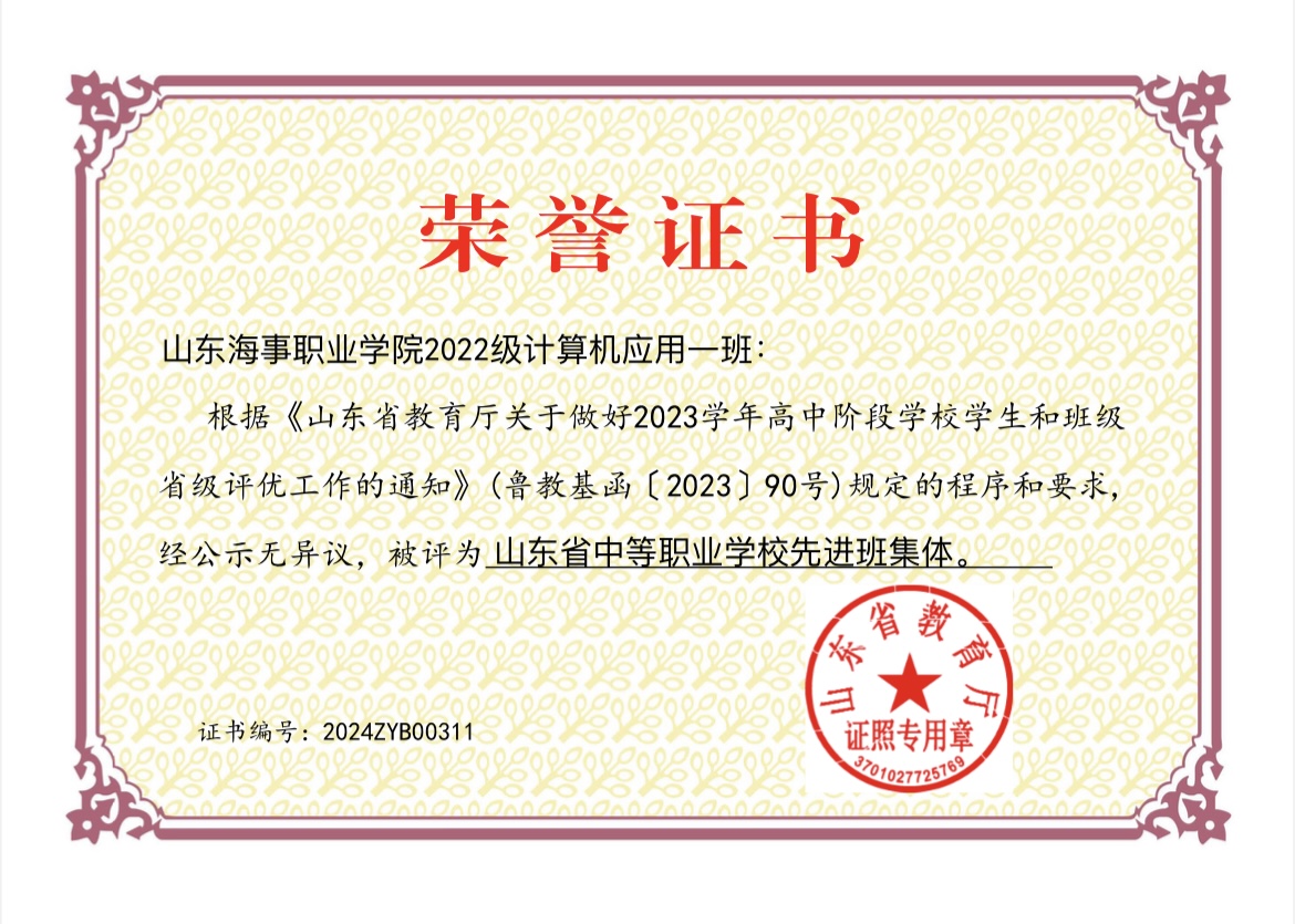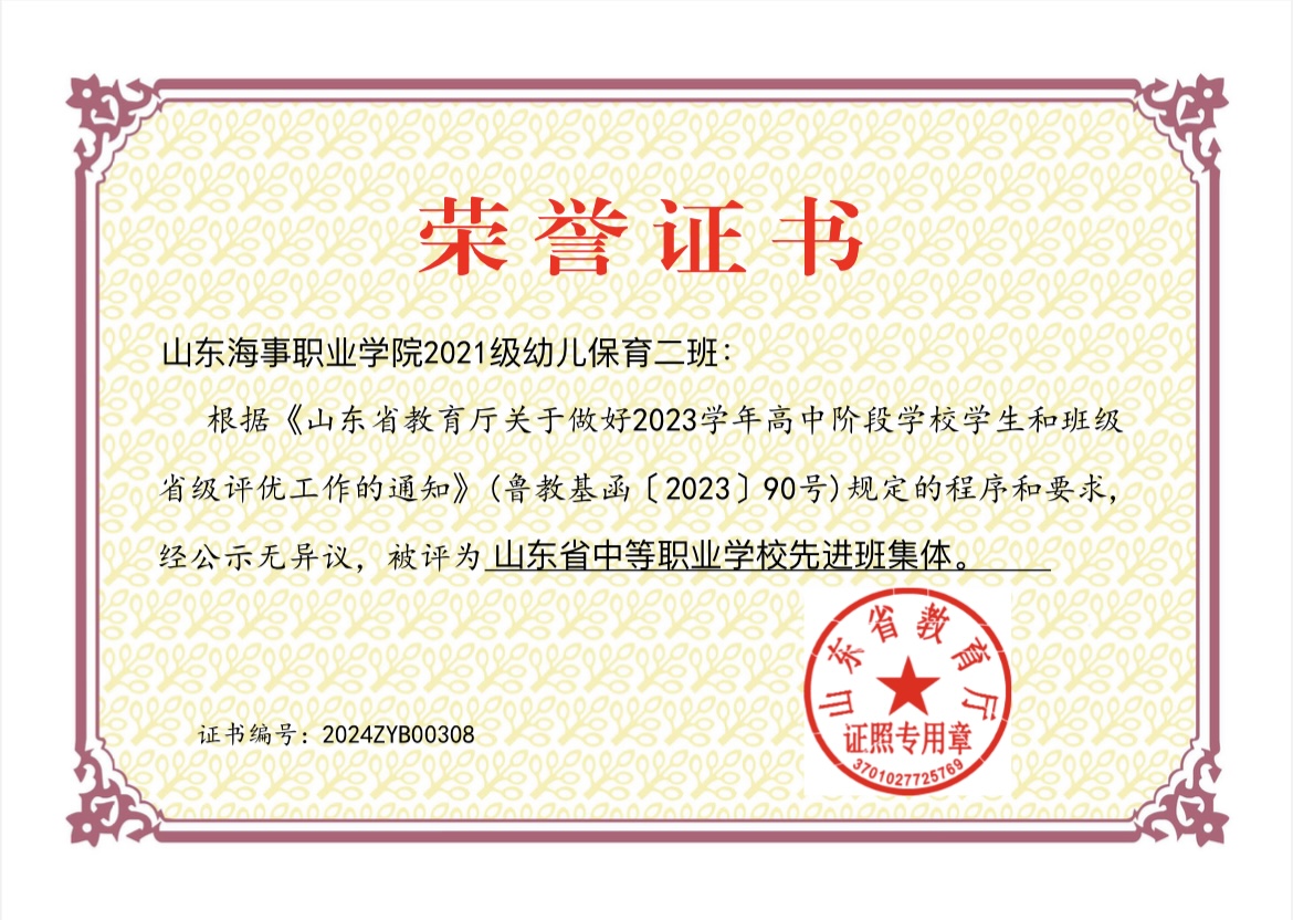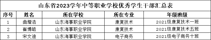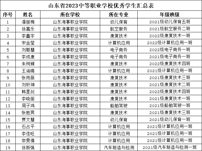 近日,山东省教育厅发布《山东省2023学年高中阶段学校学生和班级省级评优结果公示》,中职学院19名学生获省级优秀学生称号,3名学生获省级优秀学生干部称号,3个班级获省级先进班集体称号。