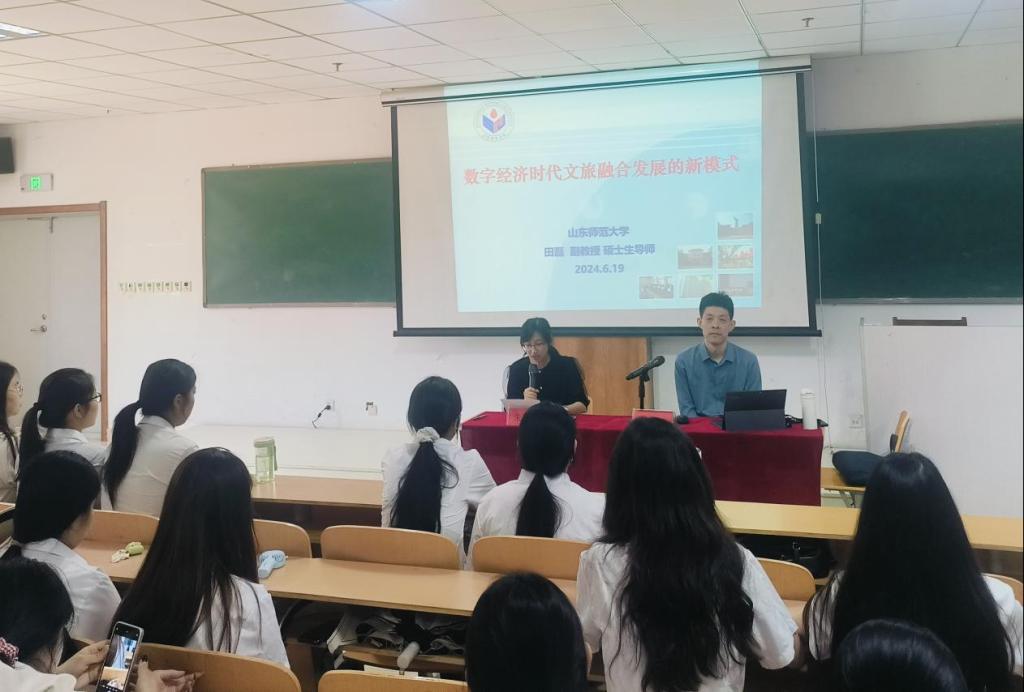 6月19日,邮轮游艇学院邀请山东师范大学旅游管理系田磊教授为邮轮游艇学院师生作题为“数字经济时代下文旅融合发展新模式”的讲座。讲座对数字经济时代的特征进行了深入剖析,详细阐述了文旅融合的内涵和意义,讲解了数字经济下文旅融合发展的新模式。田教授以其深厚的学术造诣和丰富的实践经验,为在场的师生们呈现了一场学术思想盛宴。