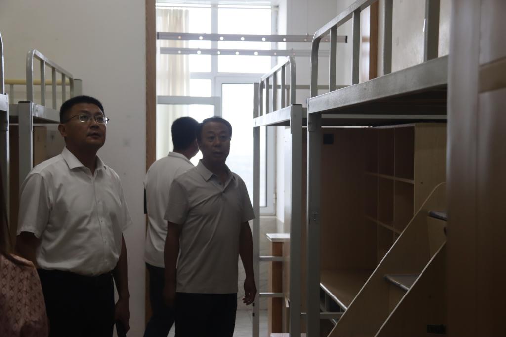接着,领导们来到宿舍区。一间间干净整洁的宿舍等待着新主人的到来。他们走进宿舍,查看床铺是否牢固、生活用品是否配备齐全。徐立清校长指出,宿舍是学生们的第二个家,要为新生提供一个舒适、安全的居住环境,让他们在这里感受到家的温暖。同时,要加强宿舍管理,确保学生的人身和财产安全。