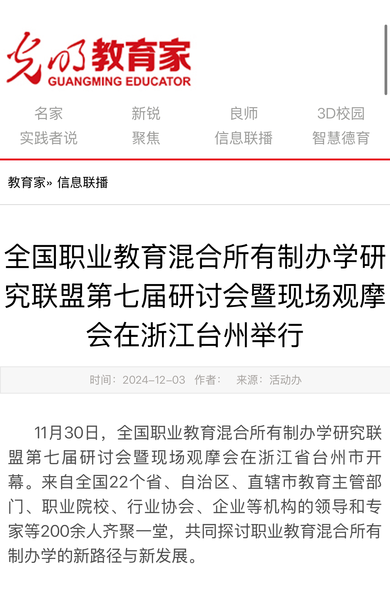 【光明教育家】全国职业教育混合所有制办学研究联盟第七届研讨会暨现场观摩会在浙江台州举行