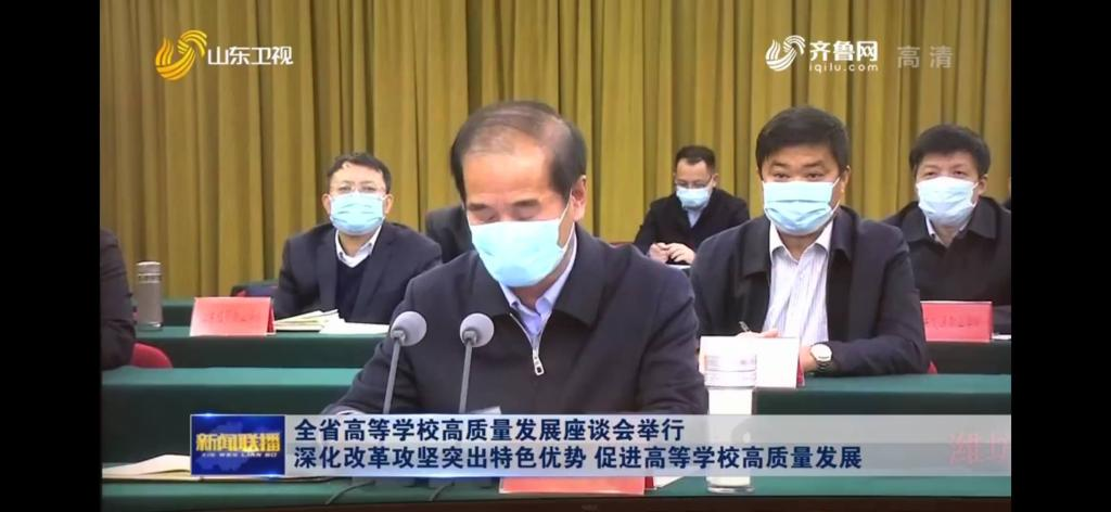2020年-4月,校长王敬良参加时任山东省委书记刘家义主持召开的全省高等学校高质量发展座谈会,并作混合所有制办学专题发言。