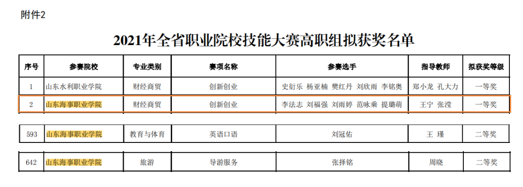 近日,山东省教育厅公布《2021年全省职业院校技能大赛高职组拟获奖名单》,学校在大赛中获一等奖一项、二等奖两项,取得历史性突破。
