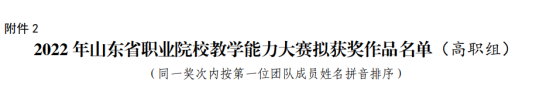9月23日,山东省教育厅对2022年山东省职业院校教学能力大赛结果进行公示,我校尹晶莹老师团队、李怡伟老师团队分别荣获大赛一等奖和三等奖,是我校深化教育教学改革,促进教师专业发展的又一硕果。