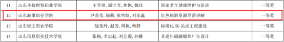 山东省职业院校教师教学能力大赛是山东省教育厅面向全省职业院校教师举办的大型教学比赛,是山东省目前最权威的职业院校教师教学能力水平竞赛。大赛设置中等职业教育组、高等职业教育组,分别各设公共基础课程组、专业(技能)课程一组、专业(技能)课程二组3个报名组别。经校内选拔,我校最终确定五支团队参加省级比赛。经过省级初赛、决赛角逐,最终我校邮轮游艇学院教师尹晶莹、徐萌、张雪妍、刘乐鑫团队以教学参赛作品“《红色旅游资源导游讲解》”获得大赛一等奖;航空学院教师李怡伟、孙丹丹、邵文卿、朱宁以参赛作品“《客舱应急处置》”作品获得大赛三等奖。
