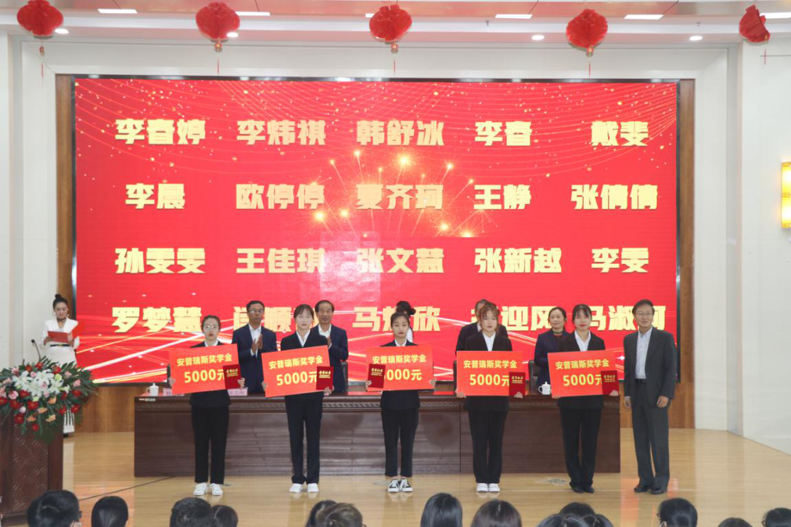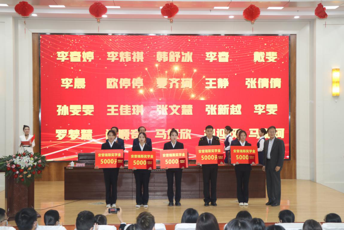 选树先进典型,发挥榜样力量;倡导勤勉之风,传递奋斗情怀。2020年10月9日下午,国际邮轮与旅游学院在图书馆报告厅隆重举行安普瑞斯奖学金颁奖典礼,为20名国旅学子颁发奖学金,共计10万元。安普瑞斯美国的首席执行长(CE0),安普瑞斯中国的董事长孙纲博士,九五至尊VI 校长王敬良教授、副校长张庆会、宋志刚,学校机关处室负责人,国旅学院院长张娣及全体教师,获奖者在内的学生代表共计400余人参加颁奖典礼,典礼由国旅学院特聘教授刘金岩博士主持。