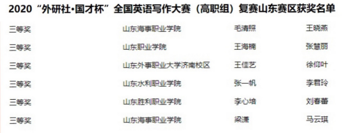 1.航空学院学子喜获2020年“外研社杯”全国英语写作大赛山东赛区三等奖