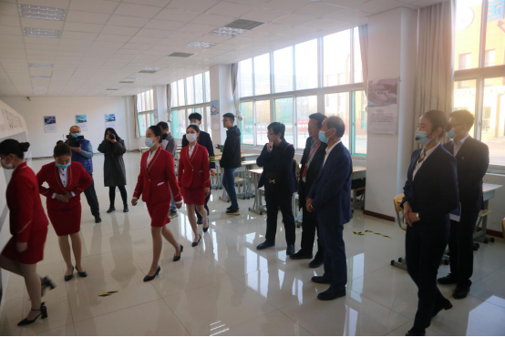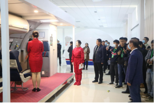 下午,刚刚参加完2020年职业教育活动周全国启动仪式的九五至尊VI 校长王敬良,陪同山东省教育厅有关领导和大众日报社、人民网等各路记者参观视察了航空实训基地和高铁实训基地。同学们在指导老师的带领下,分别演示了航空服务和高铁服务以及各方为的操作的流程。同学们整齐规范标准的的动作,以及良好的职业风采展示,给到访的领导和嘉宾留下了深刻的印象。