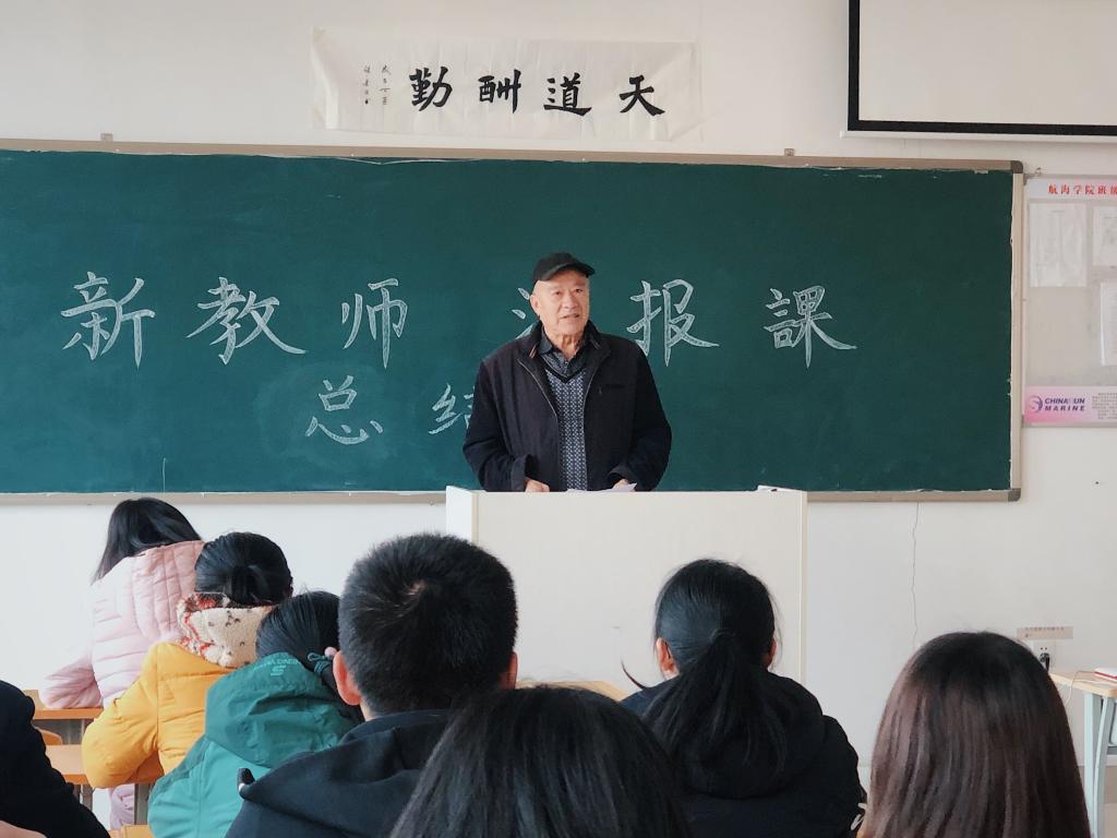 11月20日下午,教务处组织召开了新教师汇报课总结会。首先由新教师汇报课过程中表现优异的张作熙、马瑞林和赵云飞三位教师进行发言,分享自己的经验和心得,然后由李朋熙教授进行总结讲话,李教授首先对教师汇报课的表现进行了总结点评,然后对各位新教师提出了几点要求:(1)要认真备课;(2)要端正教学态度;(3)要联系学生实际;(4)要有效利用教学资源;(5)要扩大知识面;(6)要练习和掌握教学技能。希望各位新教师能快速进步,早日成为一名优秀的人民教师。