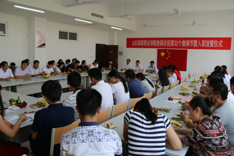 会上,李振鹏副院长首先致辞,对新教师加入“山海院”这个大家庭表示欢迎,并对新教师提出了新的工作要求和期望,同时祝大家教师节快乐。然后,新老教师代表就自己的工作经历和感想进行发言。发言结束后,新教师在李海燕老师的带领下面对国旗进行入职宣誓,标志着新教师正式踏上自己的工作岗位。