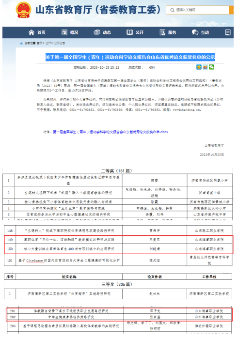 根据《山东省教育厅 山东省体育局关于征集参加第一届全国学生(青年)运动会科学论文报告会优秀论文的通知》(鲁教体函〔2023〕48号)要求,第一届全国学生(青年)运动会科学论文报告会山东省优秀论文已评选完毕,我校共有4篇论文获奖。