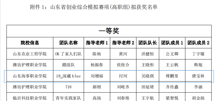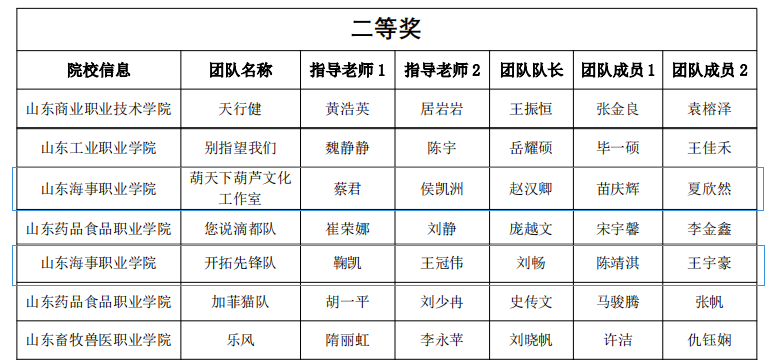 近日,第十一届“学创杯”全国大学生创业综合模拟大赛山东省创业综合模拟赛项(高职组)获奖名单发布,我校港航管理学院、航海学院、机电工程学院的参赛队伍全部获奖,共获一等奖1项、二等奖2项。