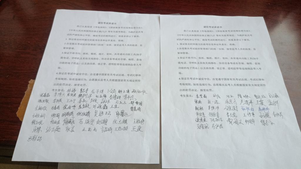 会后,学生纷纷表示一定会诚信考试,积极复习备考,并在《诚信考试承诺书》上签字。