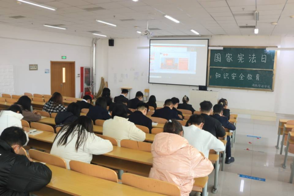 12月4日下午,在第九个国家宪法日暨我国现行宪法公布施行四十周年之际,港航管理学院组织学生干部、入党积极分子集体学习宪法知识,了解我国宪法发展历史,推动学院师生坚定做社会主义法治的忠实崇尚者、自觉遵守者和坚定捍卫者。