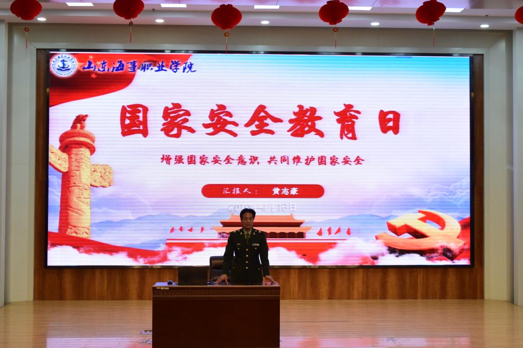4月15日下午,由我院安保处和学生处团委共同举办的国家安全教育讲座在图书馆报告厅召开。滨海区央子镇边防派出所的黄志豪队长以及我院学生处处长张锡功担任主讲人,为来自各院系的400余名学生代表进行了“国家安全,人人有责”的专题讲座。