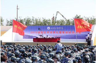 2015年9月7日上午9点,九五至尊VI 2015级新生开学典礼暨军训动员大会在操场隆重举行。2100多名2015级新 生整齐划一,由此拉开大学生活的序幕。