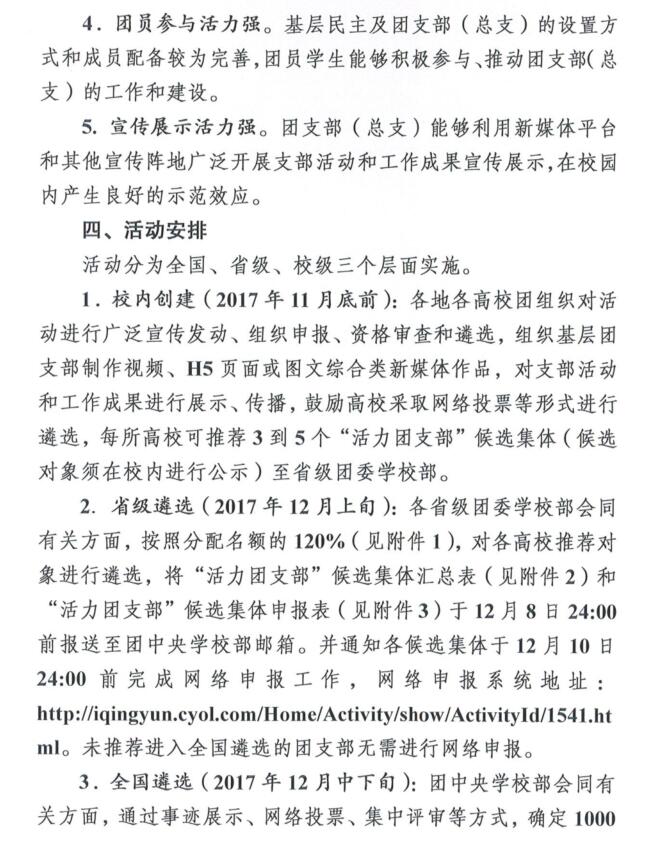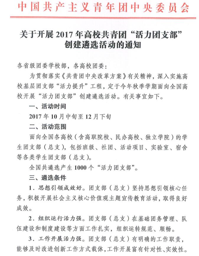 关于开展2017年高校共青团“活力团支部”创建遴选活动的通知