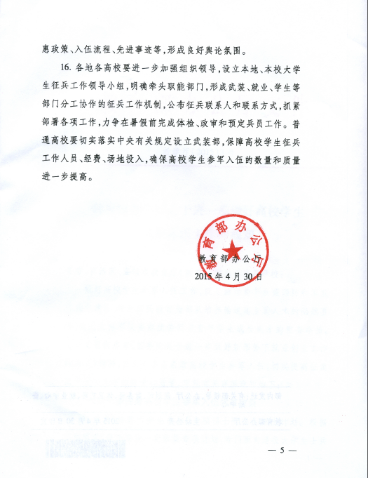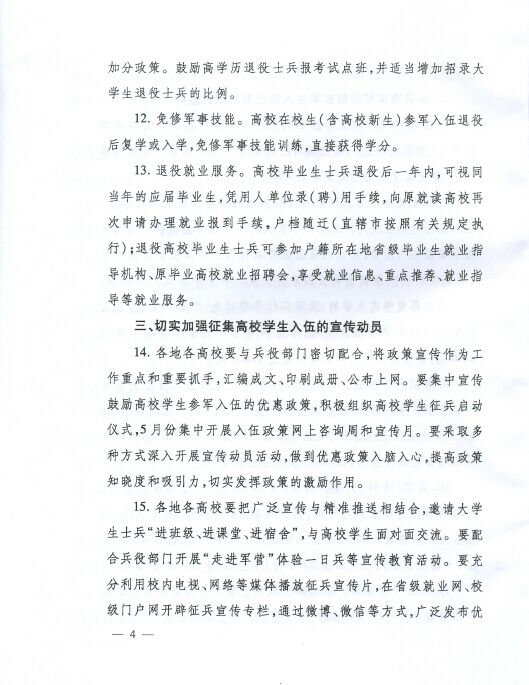 转发教育部办公厅关于进一步做好高校学生参军入伍工作的通知