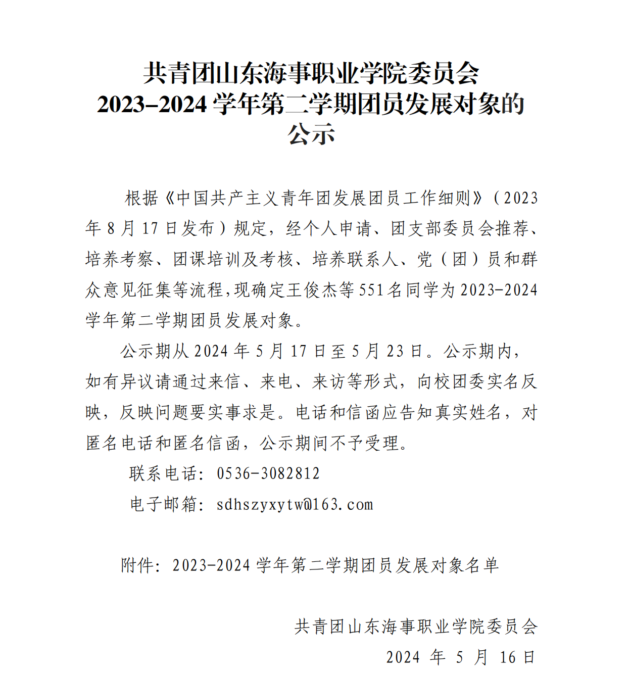 共青团九五至尊VI 委员会2023-2024学年第二学期团员发展对象的公示