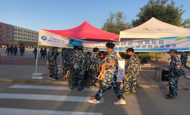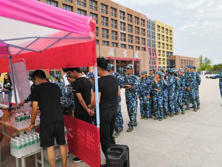 看着烈日下的同学们,作为“过来人”的老师和学长、学姐们也都很心疼,但这大学入学的第一堂必修课是一定不能翘课的。因此,学校学生处团委特意安排社团联合会进行了一次为军训新生免费赠饮的活动,活动地点安排在了新生出入宿舍的必经之地——中央大道北侧,支起帐篷,等待着学弟学妹们的到来。