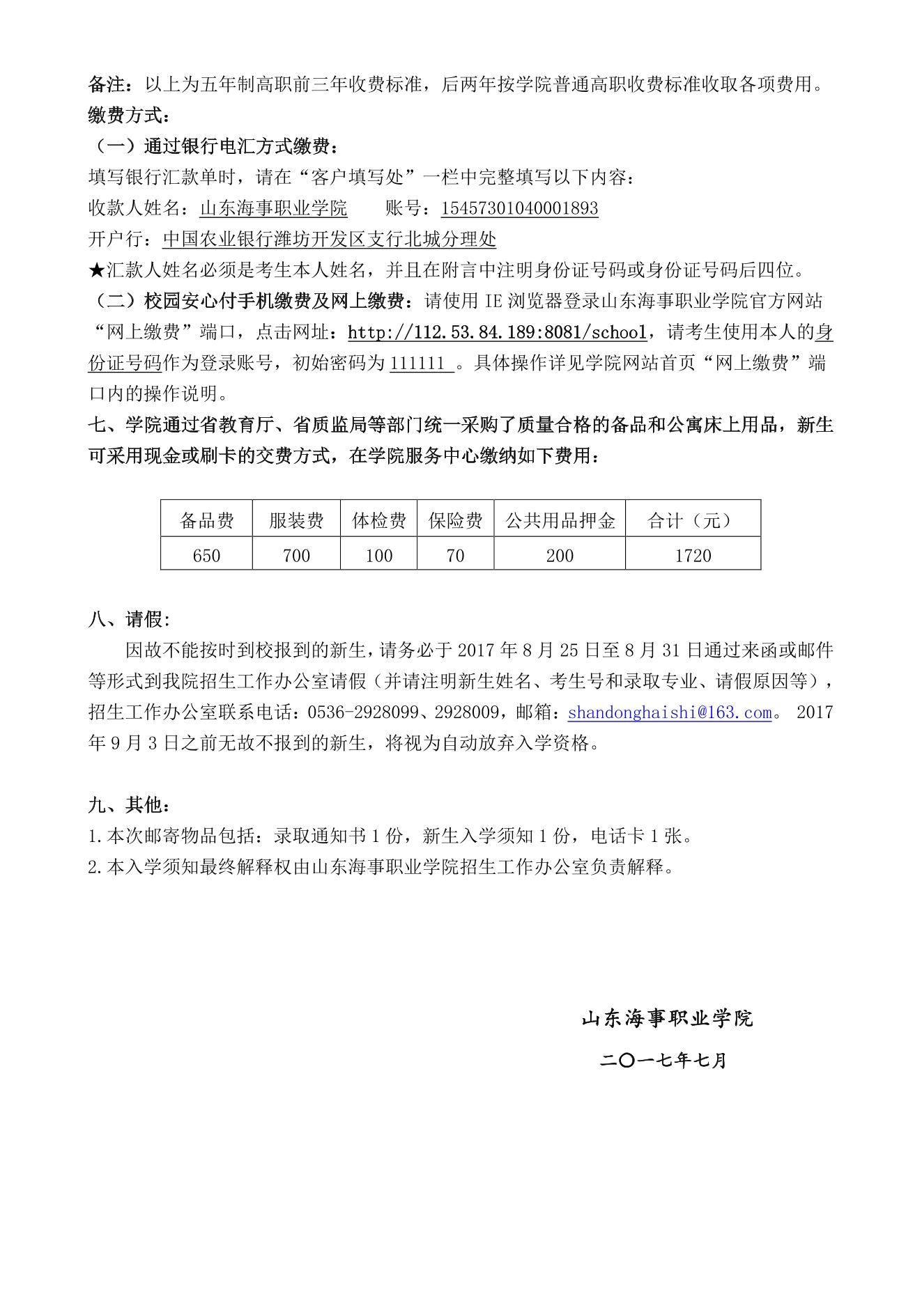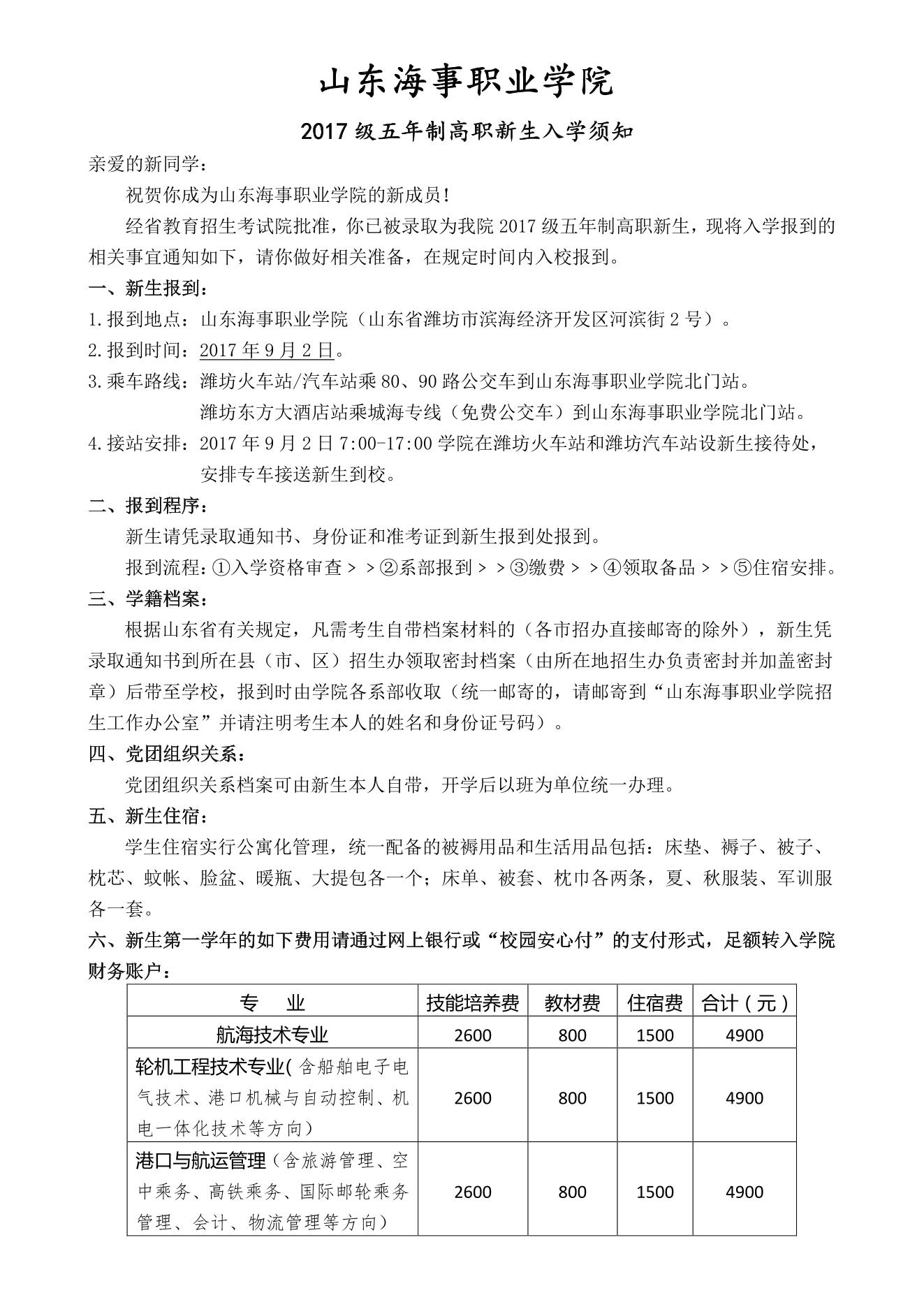 九五至尊VI 2017级初中起点五年制高职入学须知